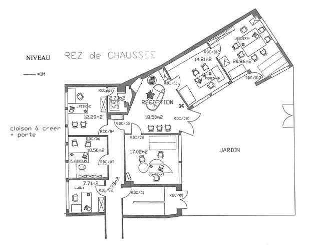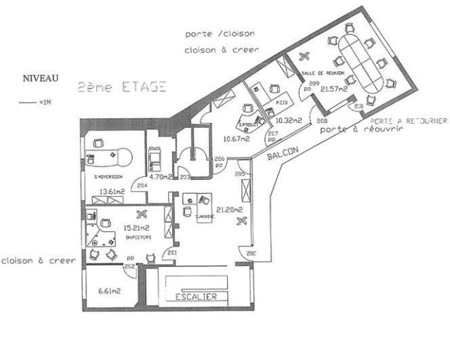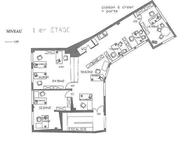 en R+3 : des bureaux cloisonnés et lumineux.