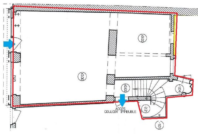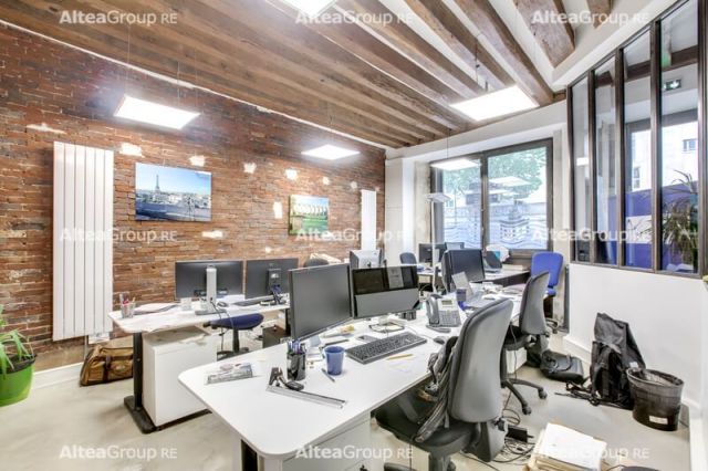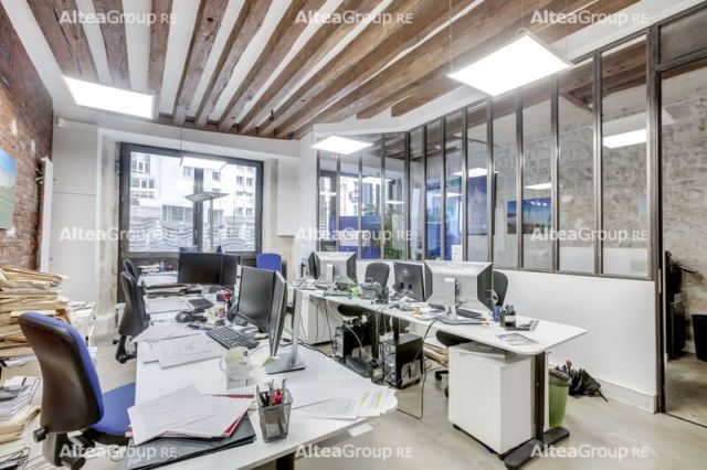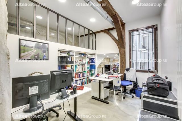 Traités façon loft, 125 m² de bureaux, locaux commerciaux en rez-de-chaussée et sous-sol.