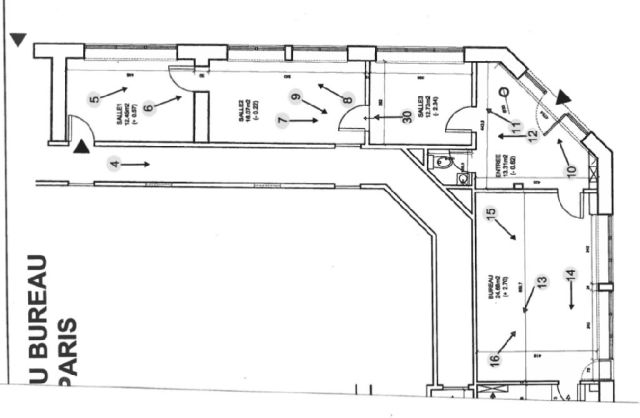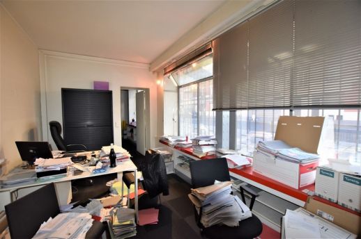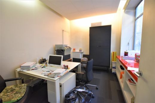 Au RDC : une surface à usage de bureaux composée d'une entrée, 3 bureaux, un open space et un sanitaire. Grande souplesse d'aménagement. Belle hauteur-sous-plafond.